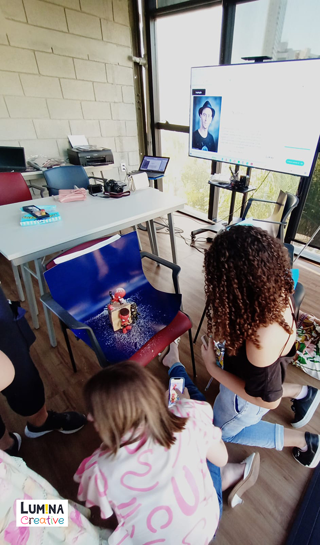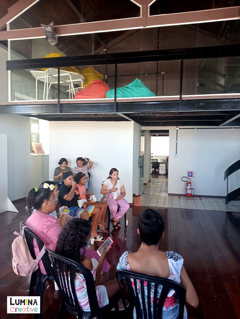A oficina tem uma duração de 3 horas. As crianças fazem uma parada de 20 minutos para lanchar.